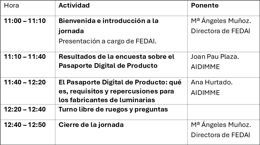 El pasaporte digital de producto será una herramienta clave para mejorar la sostenibilidad de los productos en el mercado europeo. Conscientes de su relevancia para los fabricantes de luminarias, FEDAI ha desarrollado un itinerario para la integración del pasaporte digital de producto en la estrategia empresarial, con el objetivo de impulsar la incorporación de índices de sostenibilidad en los productos fabricados por las empresas asociadas.