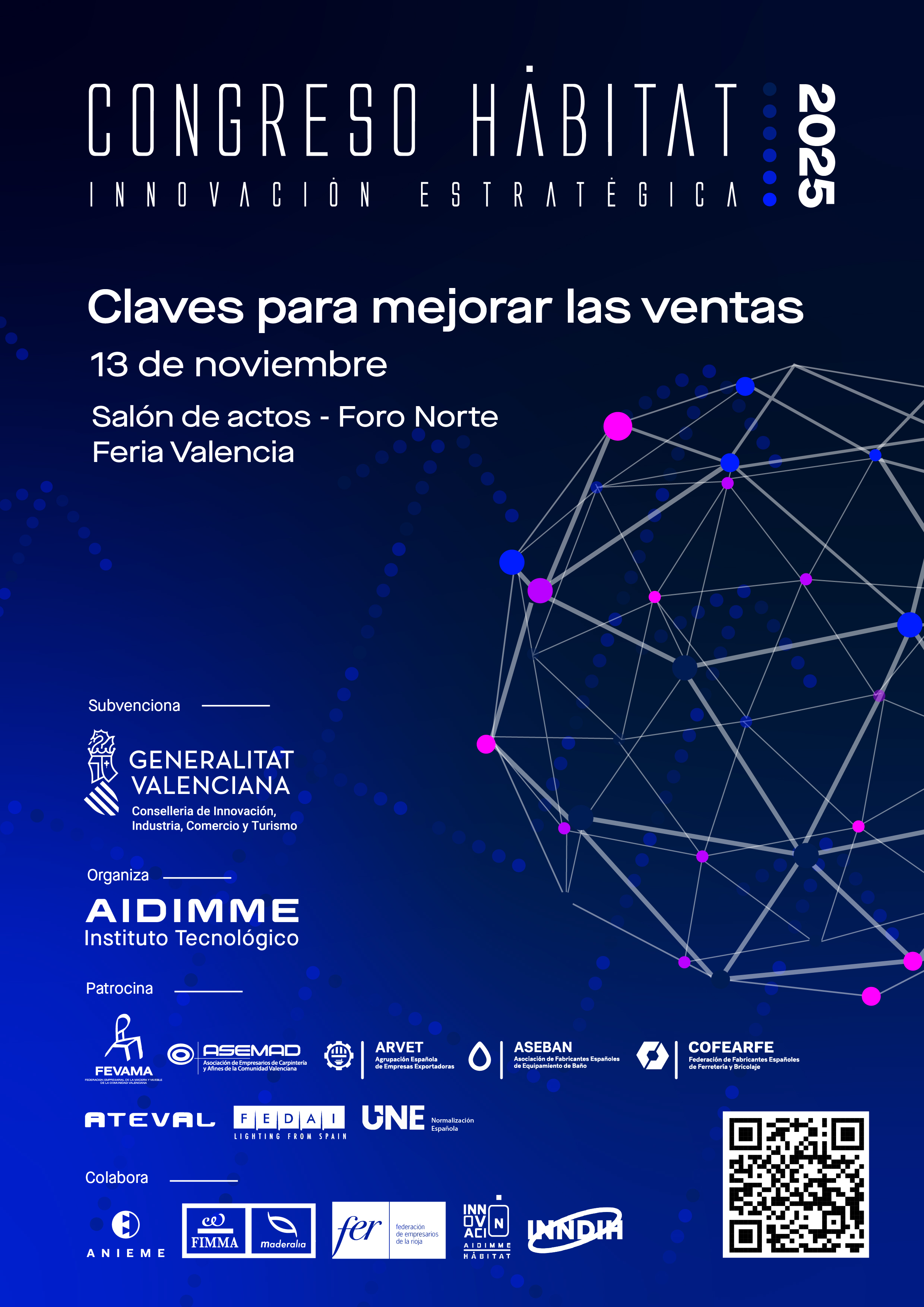 El congreso, impulsado por AIDIMME y subvencionado por la Conselleria de Innovación, Industria, Comercio y Turismo, se centrará en ofrecer una visión sobre el entorno competitivo y las oportunidades de negocio e innovación de mercado, para impulsar el crecimiento de las ventas en las empresas industriales del sector del hábitat.